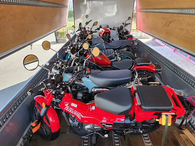 大型から小型まで、あらゆる二輪車両の陸送に対応。ハーレーやGL1800、ボスホス、サイドカーやトライクなど特殊車両もお任せください。最大10台のバイク、3台の三輪車両を同時積載可能。四輪車両との一括輸送にも対応します。